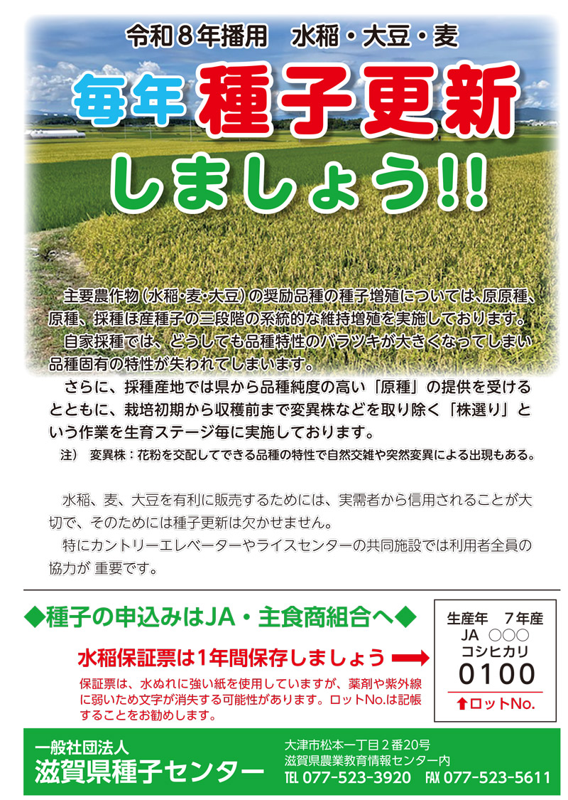 滋賀県で育成された近江米の新品種「滋賀83号」について、令和5年度(2023年)からの一般栽培に向けて、生産者を募集します。詳細は下記リンクをよりご確認ください。