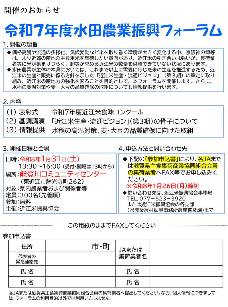 ・近江米新品種「滋賀83号」の生産者を募集の概要